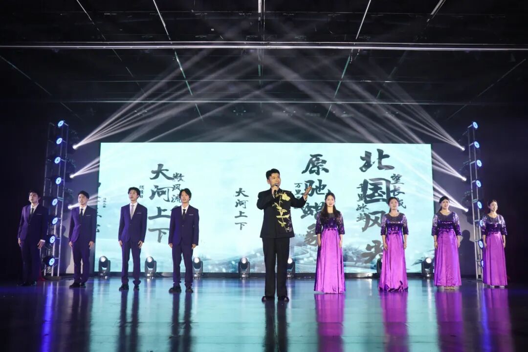 浙江越秀外国语学院育秀艺术团与艺术学院师生共同为开幕式带来了精彩节目:朗诵《沁园春·雪》《星河觉醒·花开有声》慷慨激昂,展现经典诗词魅力;舞蹈《不要怕》《五色霓裳·山河共舞》《大河之子》等节目也轮番上演,掌声如潮。